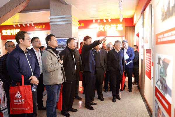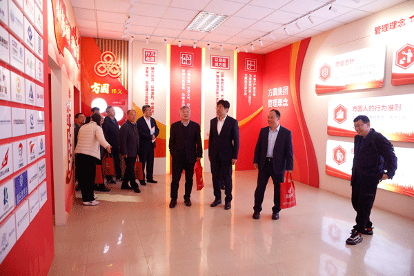 與會(huì)代表首先來(lái)到科技文化中心,通過(guò)沙盤介紹,了解方圓集團(tuán)概況概貌、產(chǎn)業(yè)布局。步入發(fā)展歷程展廳,通過(guò)“艱苦創(chuàng)業(yè)”“奮起騰躍”“創(chuàng)新開拓”“鑄就輝煌”“穩(wěn)健前行”五個(gè)篇章,回顧方圓集團(tuán)從小到大、由弱到強(qiáng)的閃光歷程。